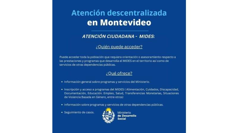 Este miércoles 26 de abril de 10 a 14 hs, se realizará atención descentralizada del Mides en el Centro Cultural…