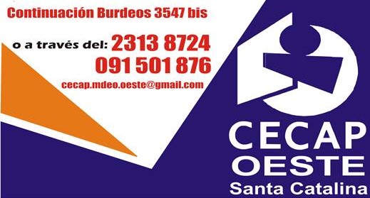 En el CECAP Oeste ubicado en Continuación Burdeos 3574 bis, continúan las inscripciones abiertas para las diversas áreas y talleres…