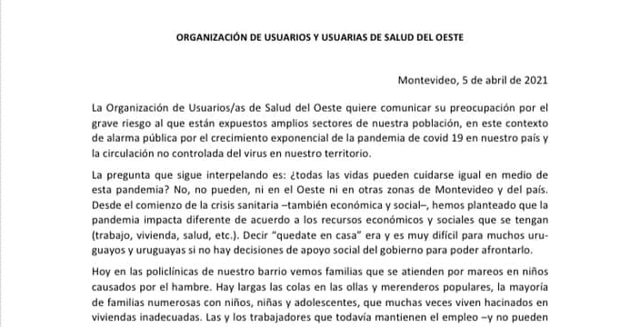 La Organización de Usuarios/as de Salud del Oeste publicó una carta, comunicando la preocupación por el exponencial crecimiento de la…