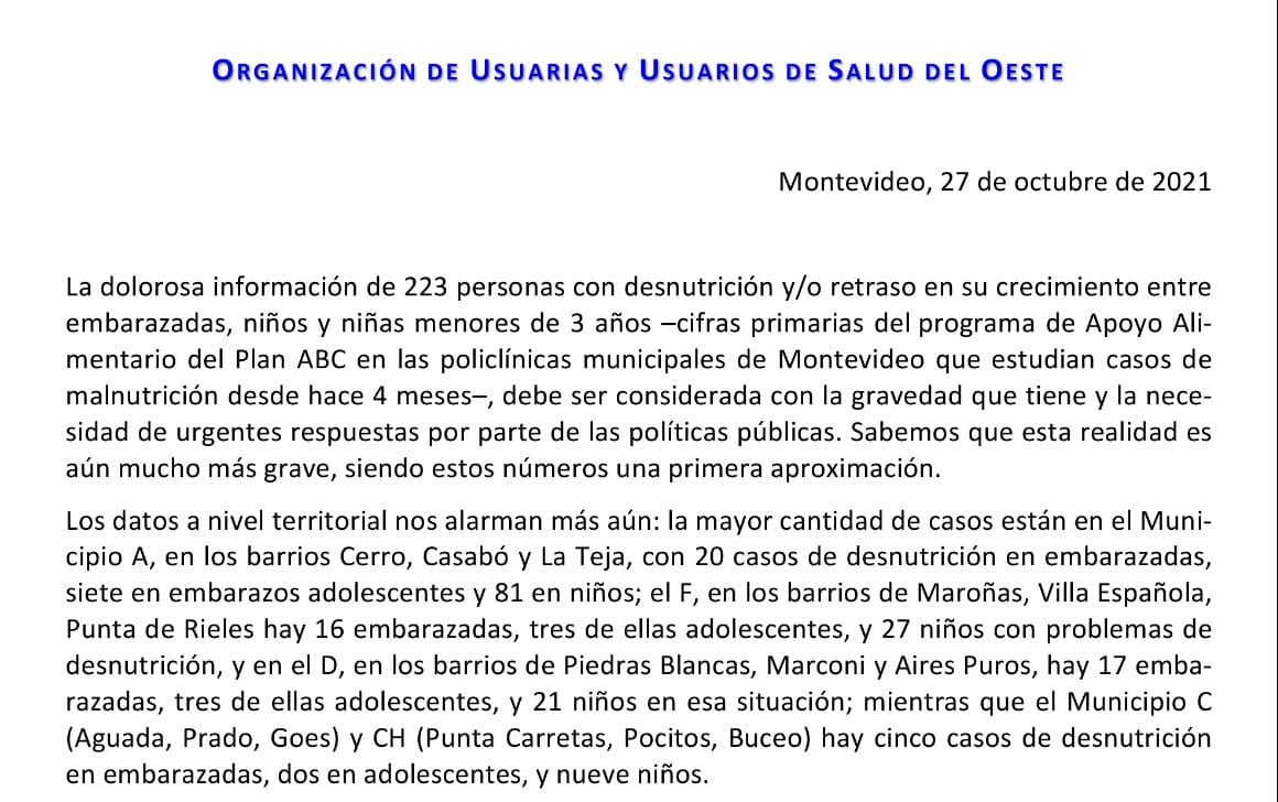 La Organización de Usuarias y Usuarios de la Salud del Oeste compartió una carta debido a la información de 223…
