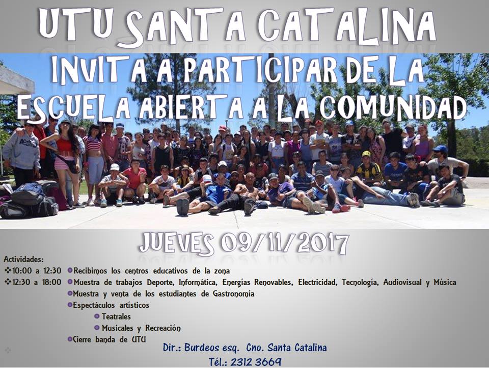 Días pasados informamos sobre la realización de la muestra anual de la UTU Santa Catalina para el próximo jueves 9…