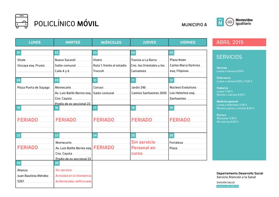 La División Salud del Departamento de Desarrollo Social de la Intendencia, dio a conocer el calendario del Policlínico Móvil del…