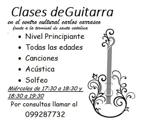 Todos los miércoles de 17:30 a 19:30 en el Centro Carlos Carrasco se ofrecerán clases de guitarra en nivel principiante…