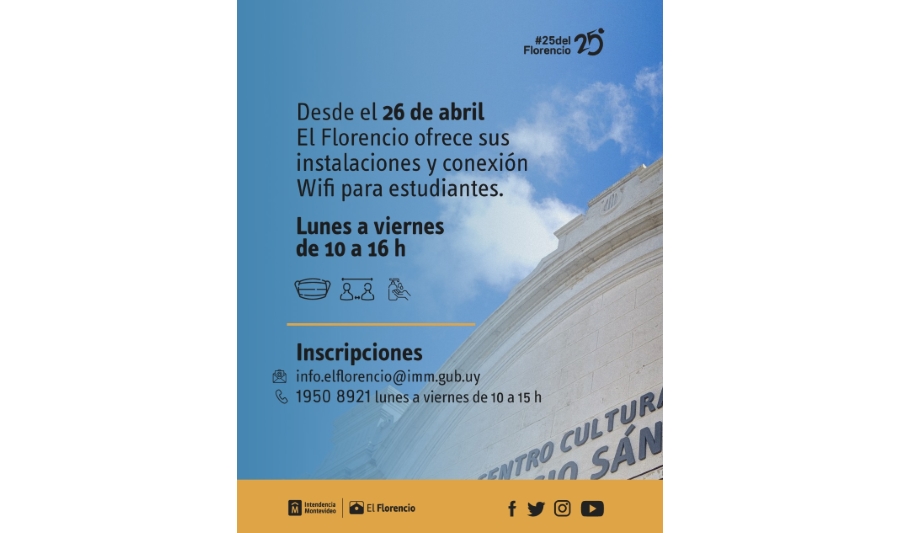 Desde el lunes 26 de abril, el Centro Cultural Florencio ofrece su conexión WiFi e instalaciones para estudiantes que lo…